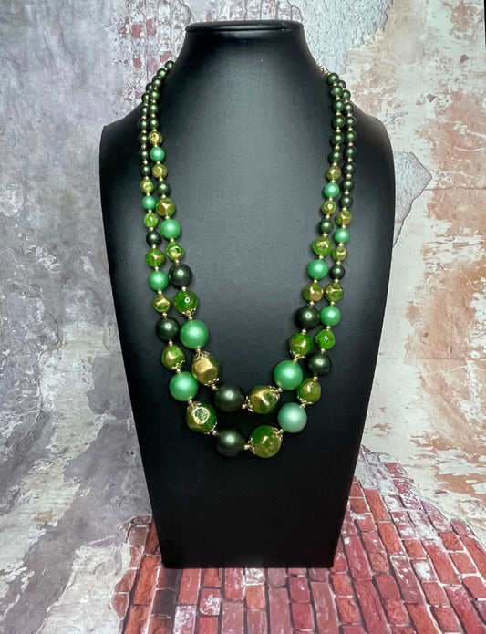 Emerald Green Graduated Multi Strand Beaded Necklace