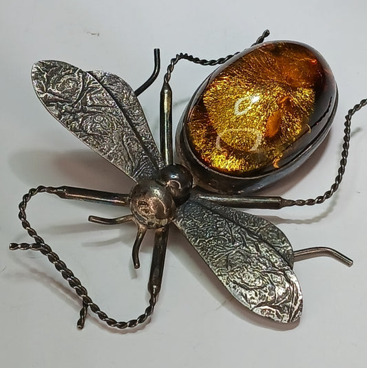 AusverkauftVintage Amber Sterling Silver Cabochon Necklace