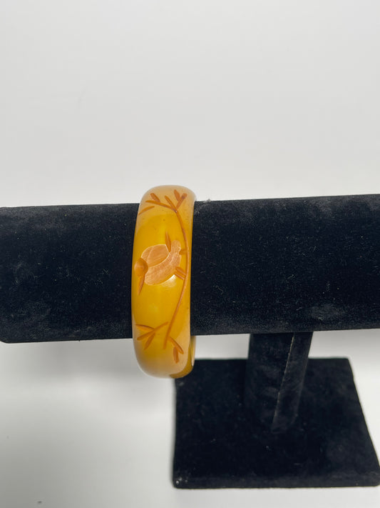 1930’s Vintage Bakelite Butterscotch Carved Bird Bangle