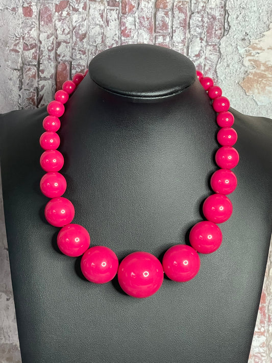 AusverkauftVintage Fuchsia Graduated Large Bead Necklace