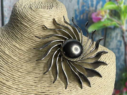 AusverkauftSilver Industrial Sun Pinwheel Brooch