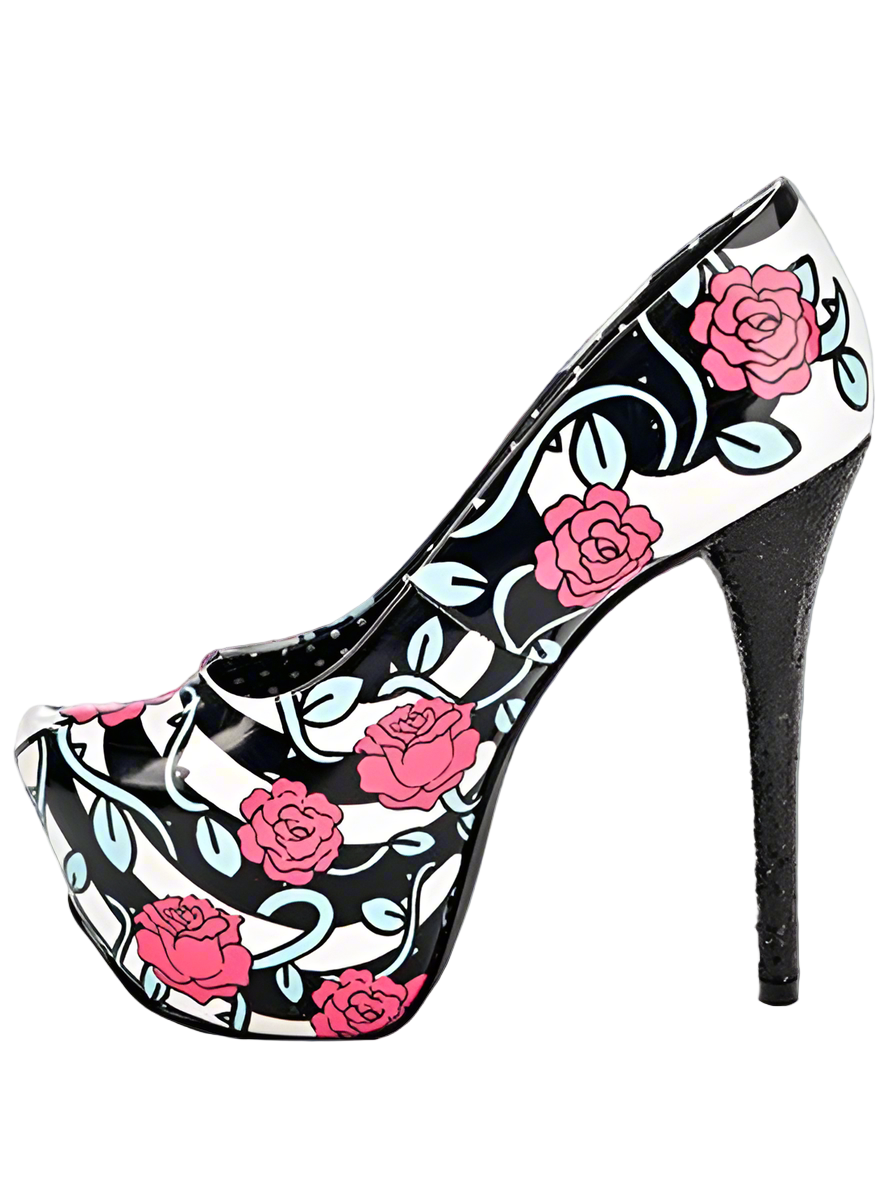 Sure, they look cute. But roses have a dark side ready to spill even the most graceful woman's blood. Sound familiar? If so, maybe these heels are for you.