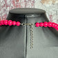 The fuchsia color of the beads is bold and eye-catching, adding a pop of intense pink to any outfit. The beads are made of plastic or acrylic, reflecting the use of vibrant, synthetic materials popular during the 1980s.