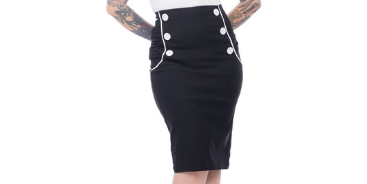 Black Faux Leather & Blue Metallic Chain Fringe Skirt
