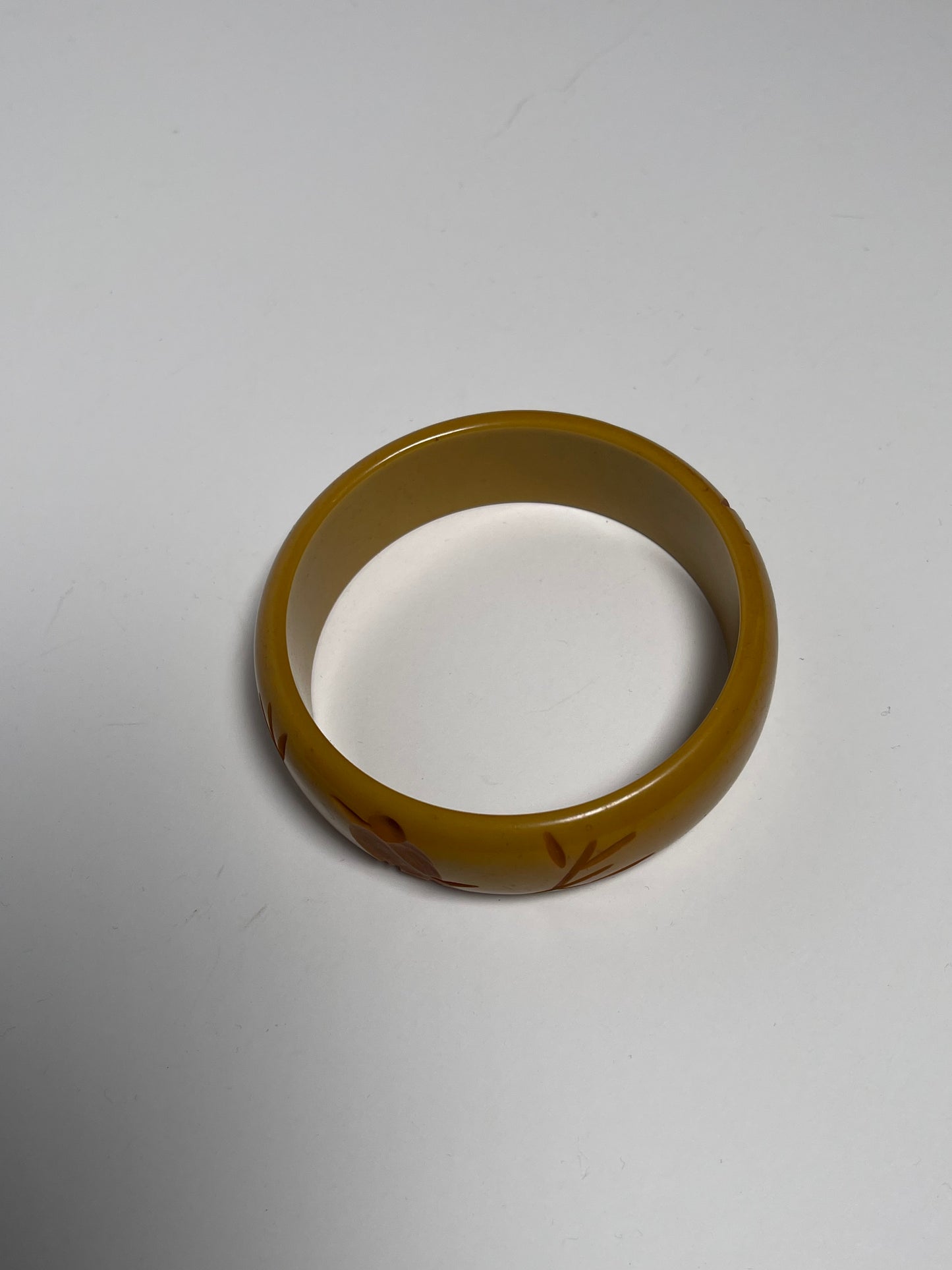 1930’s Vintage Bakelite Butterscotch Carved Bird Bangle