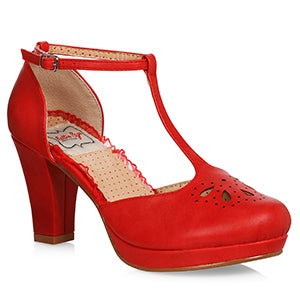 BP303-MERCY Bettie Page 3" T Strap Cut Out Detail Heel