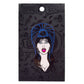 Official Elvira Mistress Of The Dark Pop Icon Enamel pin by Kreepsville . Alloy pin with a pop art style Elvira bust design . Size approx 2.6" (6.6cm) tall x 1.25" high (3.1cm).