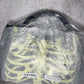 Black canvas bag with printed glow in the dark ribbon cage comes with a detachable, adjustable strap and measures 11” tall, 14” wide, and 5” deep.