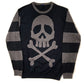 Don't lose your head in our Harlock Skull Grey Striped Sweater featuring a grey knit skull design on the front and grey striped sleeves made out of 100% cotton.*This product runs small if you are in-between sizes we recommend sizing up.