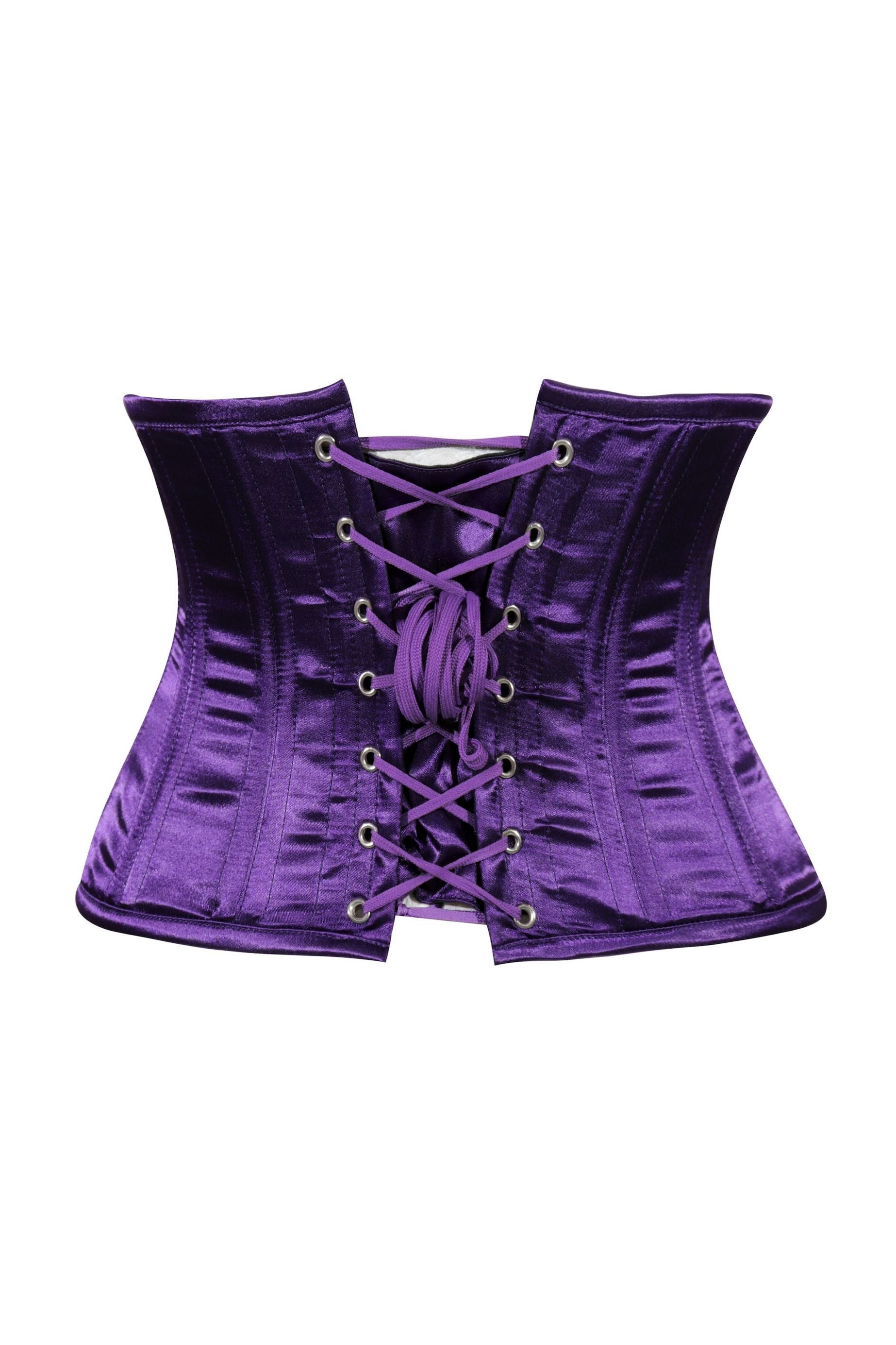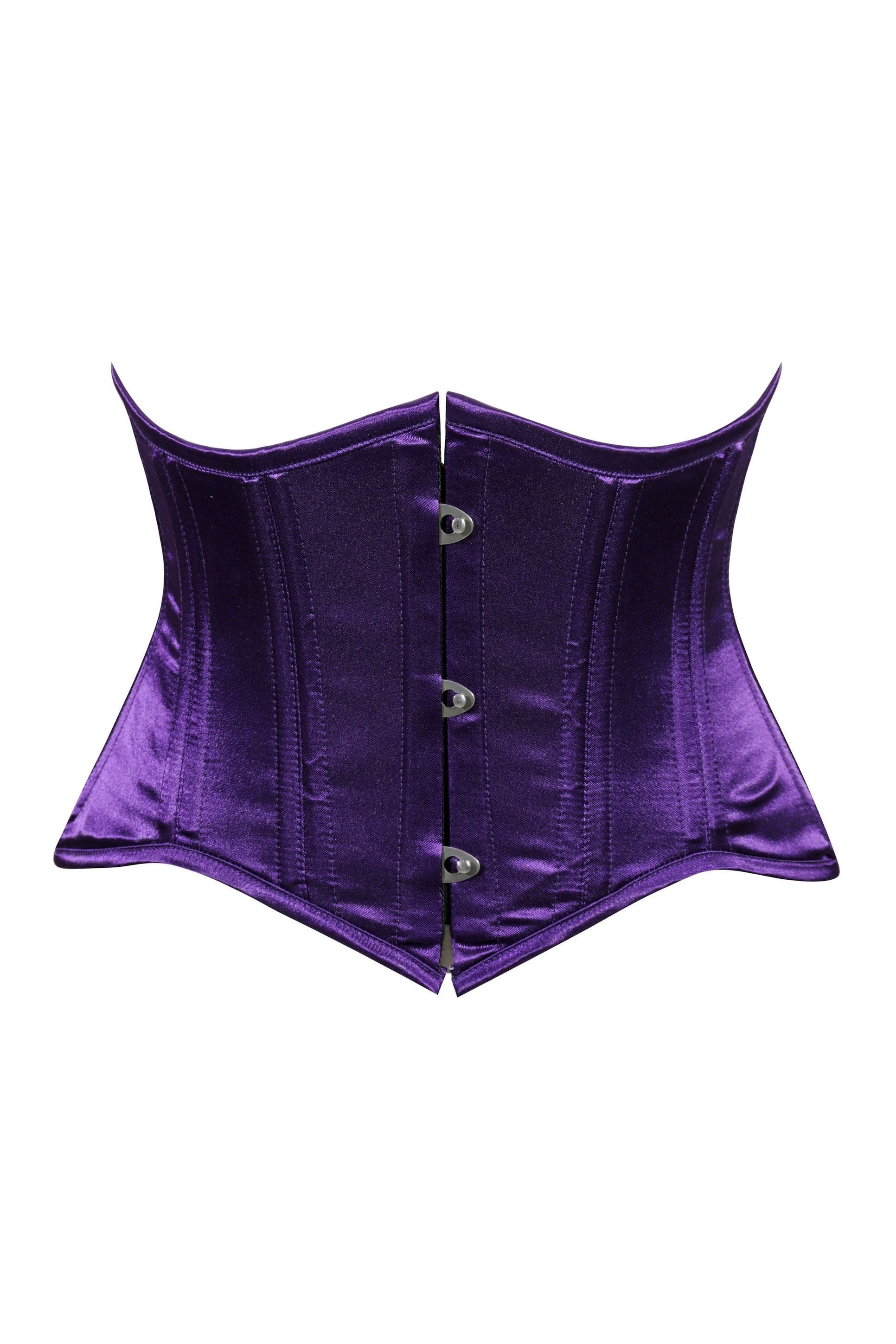 Lavish Dark Purple Satin Mini Cincher Underbust Corset Waist Cincher Busk Closure