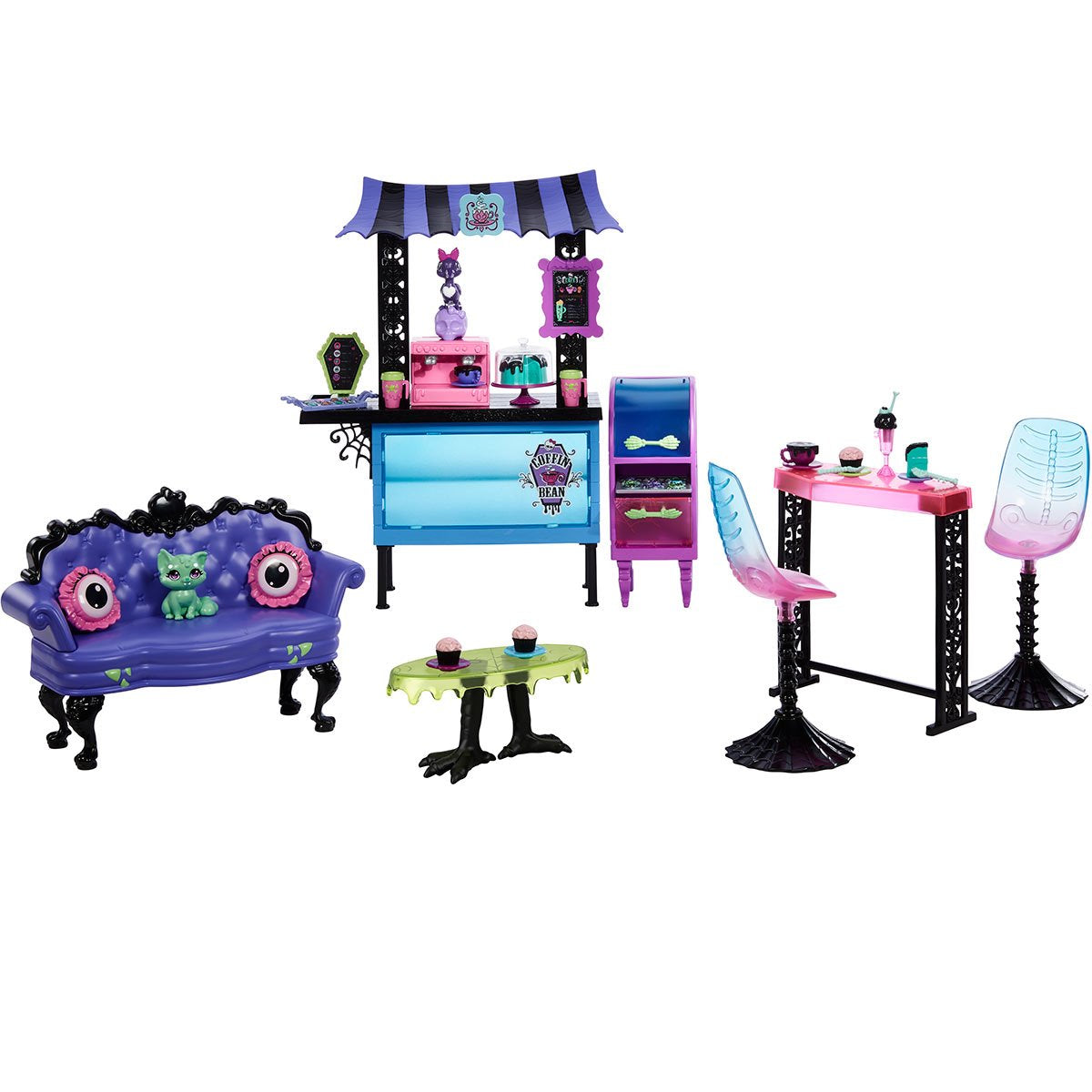 Welcome to the Coffin Bean café, where the treats are dreadfully delightful. It’s the hottest haunted spot in town for Monster High students to come after school, whether they want to hit the biteology books, chit chat while playing with monster pets, or enjoy scaretastically scrumptious snacks. This playset accommodates five Monster High dolls (sold separately), making it the go-to place for the ghouls to come together and chill! It also includes three play areas and over 20 individual pieces, offering endless opportunities for storytelling and world-building. Ages 4 and up.