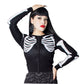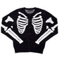 This button down Skeleton Ribcage Bones Cardigan by Kreepsville will have you jumping out of your grave. Featuring white knit ribcage design on the front and back and bone arms down the sleeves for a spooky skeletal look that will creep your bones warm. Made of 100% cotton for a comfortable fit. Designed in California..