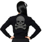 This button down Skull Studded Cardigan by Kreepsville is the perfect statement piece for any bone-afide baddie! Turn heads with this creepy knit cardigan featuring silver metal studs fashioned into a skull and crossbones design on the front and back. Crafted from 100% cotton for a warm and comfortable fit even on the most bone chilling nights! Designed in California.