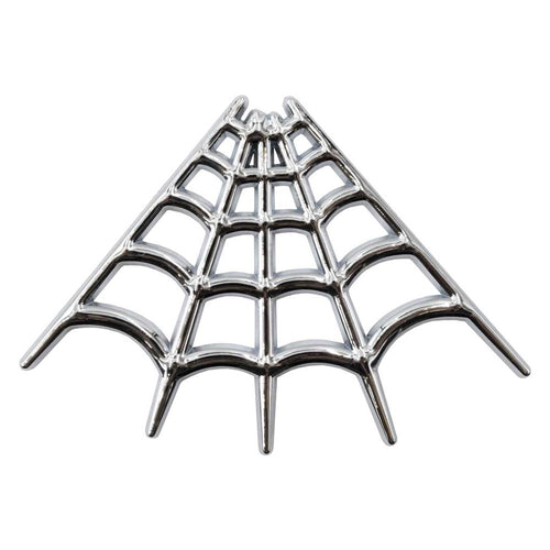 Spin a web of style on your ride with Kreepsville's Spiderweb Chrome Stick On Emblem. Creep your car motorcycle truck or hearse with this wicked web 3D car / truck emblem badge. Simply peel and stick this spooky stylish emblem to haunt the highway! Made of a durable abs acrylic with metal chrome detailing and long-lasting foam sticker. Size approx. 3.75" (9.5 cm) x 2.5" (6.5 cm). Designed in California.