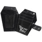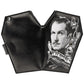The officially licensed Vincent Price Nevermore Coffin Wallet by Kreepsville is the perfect gothic accessory. Featuring horror legend Vincent Price on the front and his logo printed on the interior of a spooky coffin shaped wallet. Made with a soft and sturdy PU vinyl it's the perfect resting place for your cards and cash with 4 card spaces a clear I.D. holder and 2 inner compartments. The snap fastener and eyelet for a wallet chain ensure your creepy cash is safely secured. Sizes approx: 5.5" L (14cm) x 4.25" W (11cm); 8.25" (21cm) wide when fully opened.